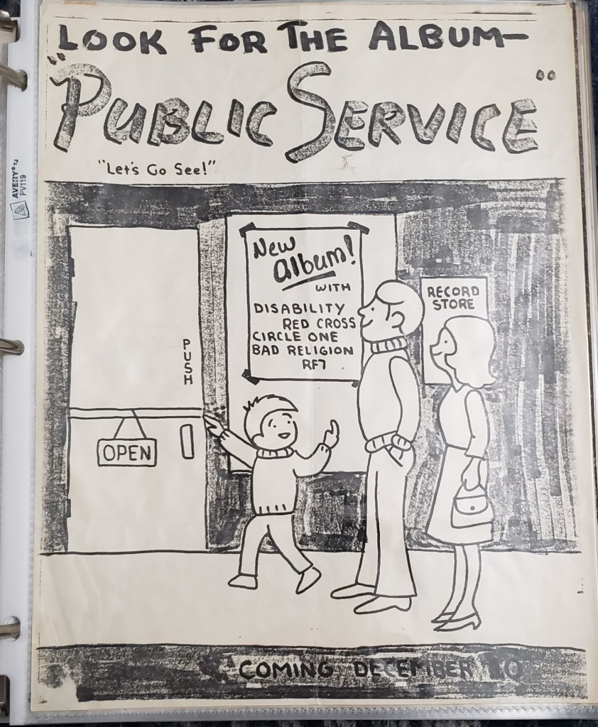 This was in the early days, in like 81 at about the same time the “Public Service” compilation came out and I went to that show in support of the compilation …every band on the compilation played and it was a really really cool show. Take a look at the advertisement flyer for the album.